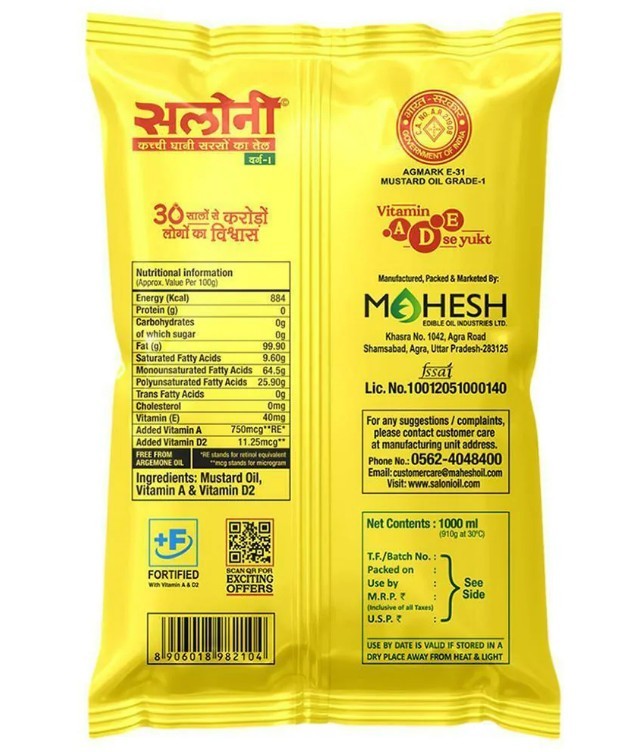 Saloni Kachi Ghani Mustard Oil 1 L (Pouch)